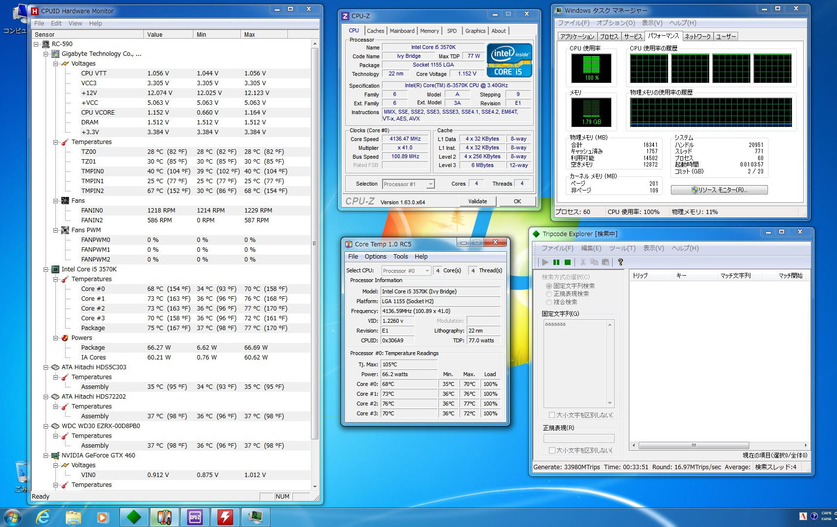 cpuクーラーを交換後に同じ負荷をかけてみました。