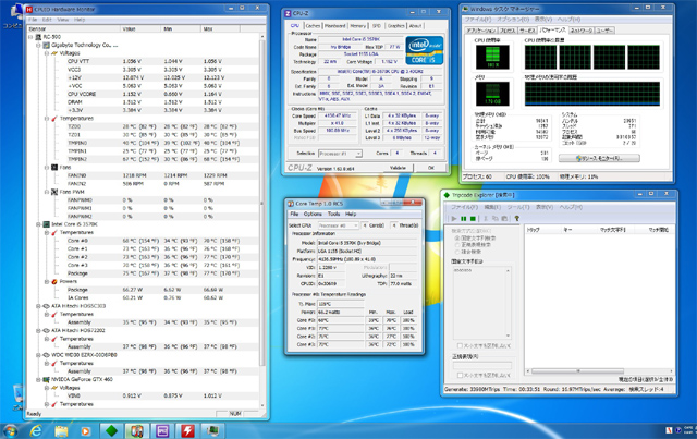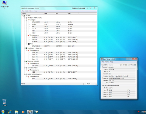 Core Tempで33℃/29℃/41℃/41℃ ↑クリックで拡大