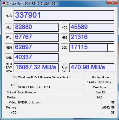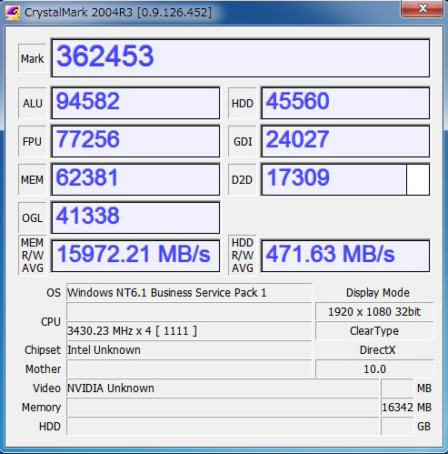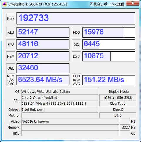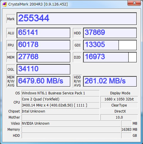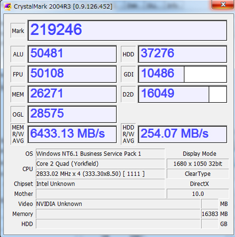 CPUの値(ALU,FPU)で約25%アップ、メモリの値で約220%アップ、トータルで約30%アップの結果となりました。(^_^)v