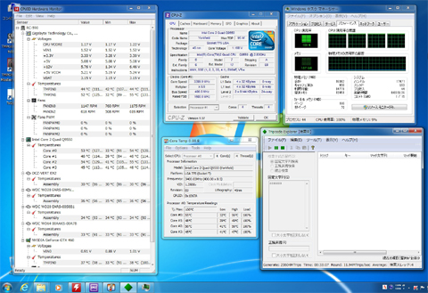 上記のように負荷100%でも充分な冷却性能が確認されたので、いよいよcpuのオーバークロックに挑戦します。