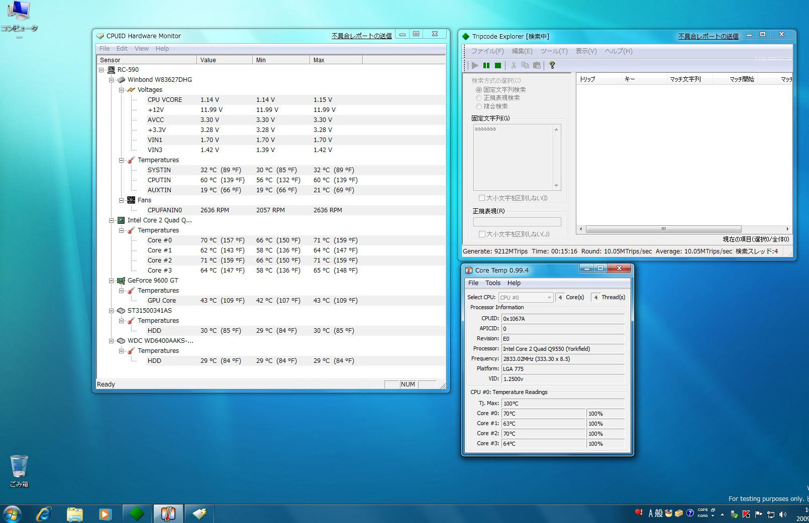 Core Tempで70℃/63℃/70℃/64℃ ↑クリックで拡大