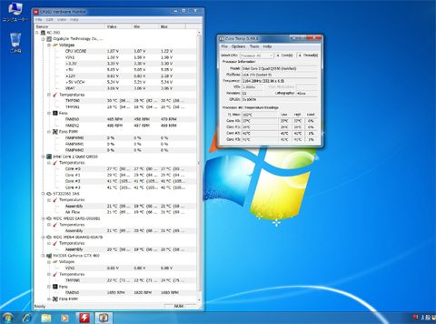 Core Tempで27℃/29℃/41℃/41℃ ↑クリックで拡大