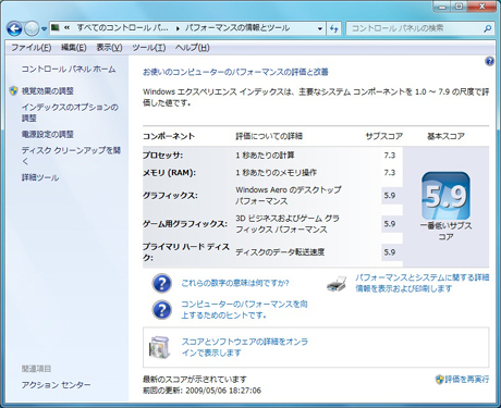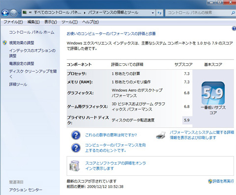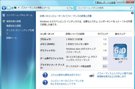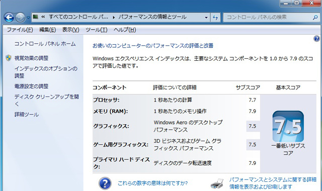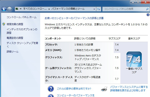 プロセッサとメモリが0.1上昇してゲーム用グラフィックスとハードディスクハードディスクが0.1減少、グラフィックスは7.9から5.9と大幅な減少でした。