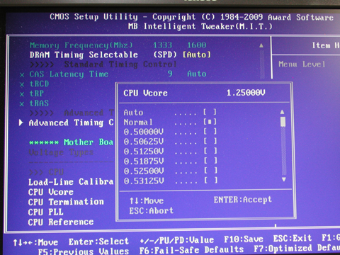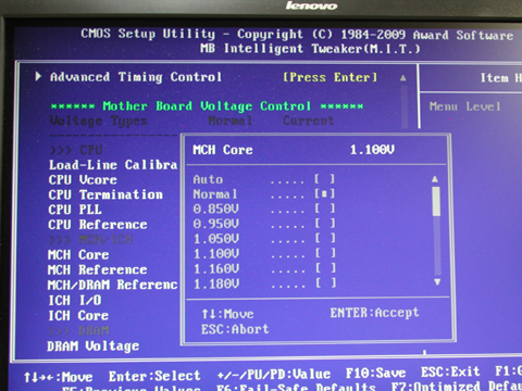 CPU Vcore,MCH Core,DRAM Voltageの全ての項目を