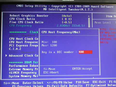 以上の設定でQ9550定格の2.83GHz(333MHz×8.5)から、2割アップの3.4GHz(400MHz×8.5)として稼働できようになりました。