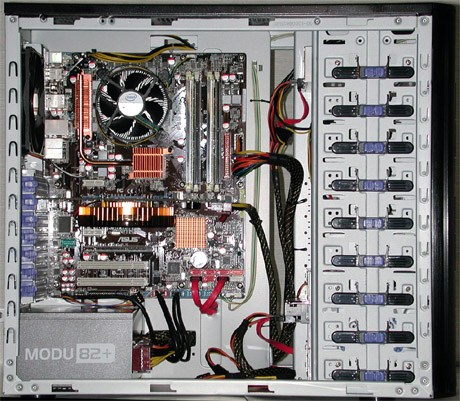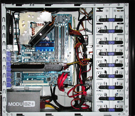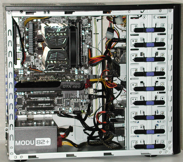 将来のオーバークロックを見こして冷却性が良く、増設のし易いケースを選択しました。電源は冷却を邪魔しないモジュール式のものを選択しました。
