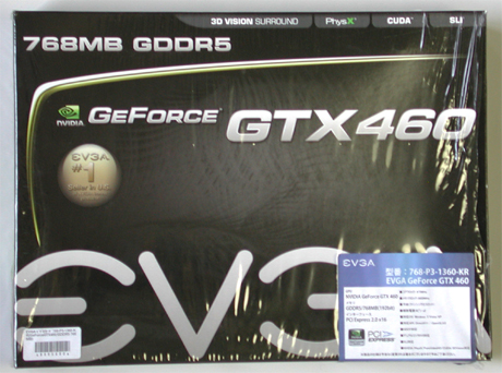 購入したのはEVGA製のGeForce GTX460 768-P3-1360-KRです。