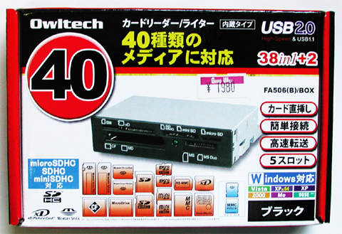 デジカメなどのカードメディアを読み込むためにカードリーダーを取り付けることにしました。購入したのはOwltechのFA506(B)/BOXです。