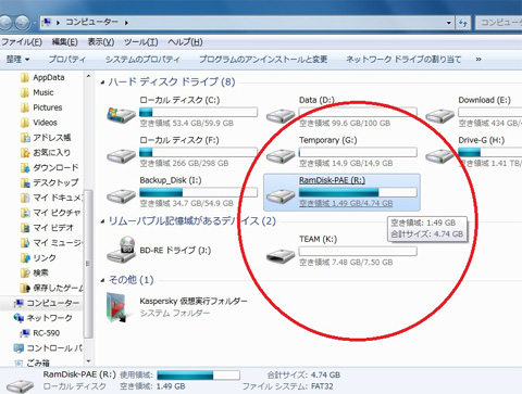 そこでGavotte Ramdiskというソフトを使って認識していない残りのメモリーをラムディスクとして活用することにしました。