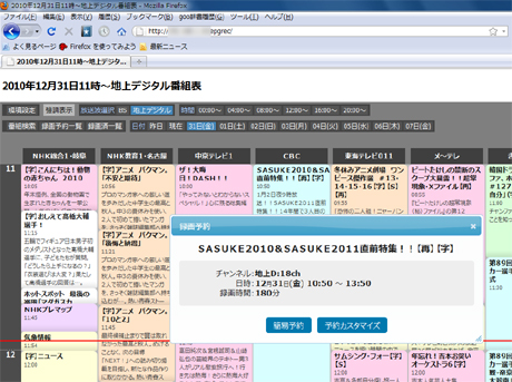 後は、書籍の解説とおりでブラウザの番組表からクリックするだげで簡単に録画できる快適な録画サーバーが出来上がりました。