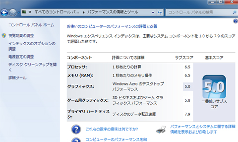Windows8にも性能テストは有りました。スコアは9.9まで。(Windows7は7.9まで)