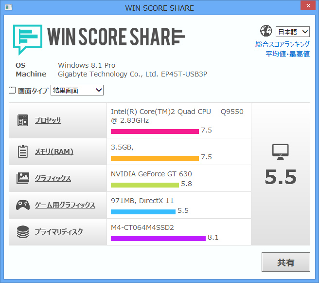 スコアは予想通りグラフィックがボトルネックでした。