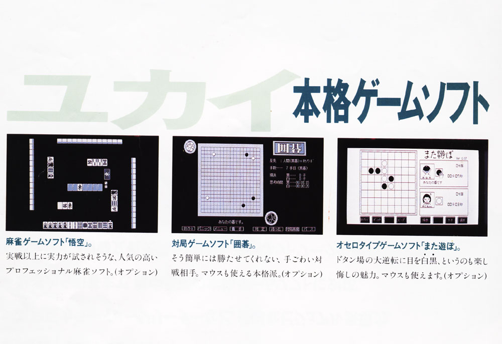 | この機種にはオプションでゲームもあったのですが買わずにすみました。(^_^;) そのほかにも隠しメニューの存在を知り、ワープロ/パソコン通信にのめり込むことになりました。そのことが必然的にパソコンに移行するきっかけになりました。 しかしながら、この機種はオプションでカットシートフィーダー、カラースキャナー、イメージキャッチャーなども購入していたので手放すことはなく、現在も倉庫の片隅に保管してあります。 |