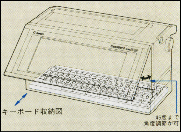| タッチタイプ(ブラインドタッチ)を覚えて残業時間を減らしたいという思いのためでした。 購入したのはCanonのキヤノワードミニα10でした。 当時のワープロの印字品質は24ドットが主流でしたが、これは36ドットと綺麗に印字できる点と、キーボードが本体の中に収納できる点で決めました。 タッチタイプはローマ字入力方式ではなく、カナ入力方式で習得しました。 実は小学校の転校の影響でローマ字の勉強をしていなかったので、ローマ字がずっと苦手なのです。 |