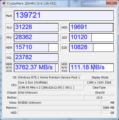 結果、CPU、メモリーで約4倍、HDDは約2倍、VGAは約3倍、トータル3倍強のパワーアップとなりました。(^_^)v